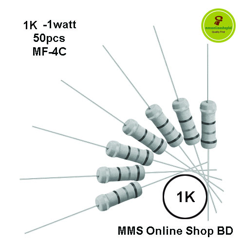 50Pcs 1K Metal Film Resistor 1Watt 5% Tolerance Fixed Resistors 100৳